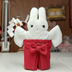 巫女さんの装束を着た、手のひらサイズのうさぎさんです。